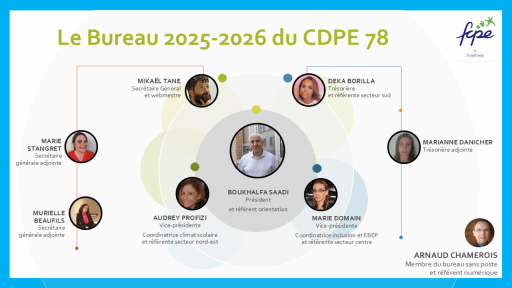Le Conseil Départemental des Parents d’Élèves (CDPE 78) rassemble l’ensemble des conseils locaux FCPE du département. Il assure le lien entre le niveau national et le terrain, et inversement.